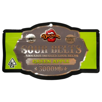 Devour Sour Belts – Green Apple | Cannabis-Infused | 3000mg THC By Devour