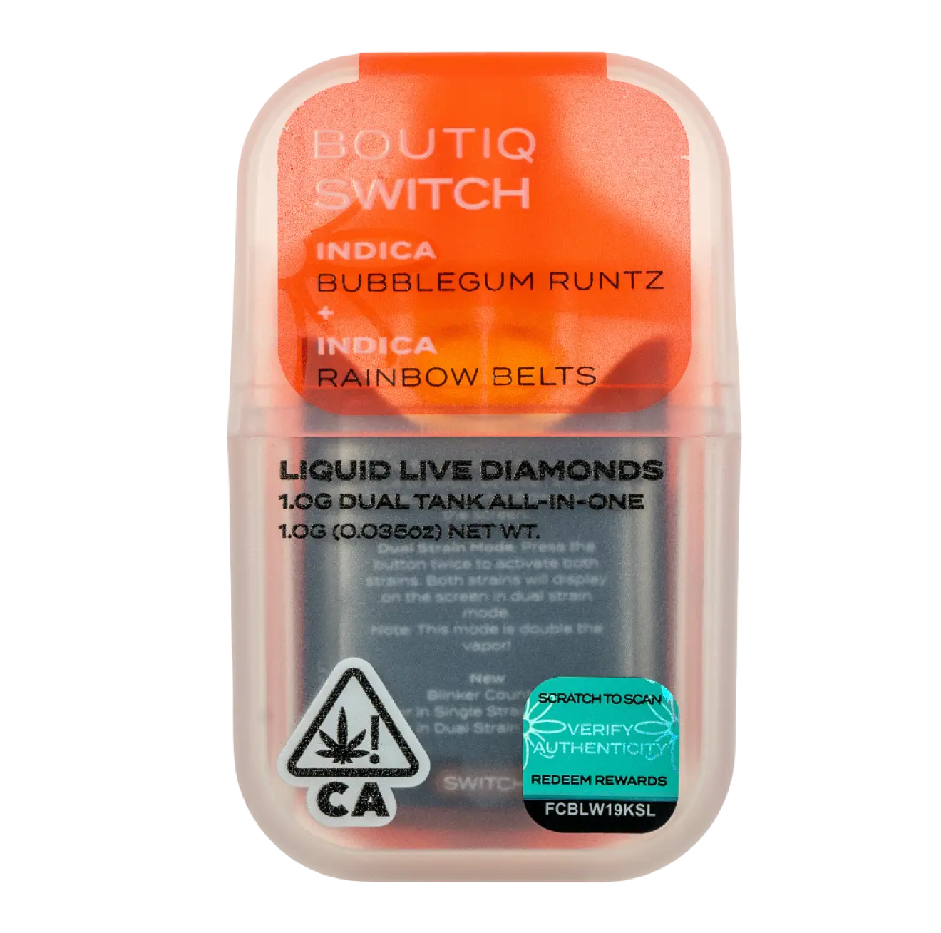 Boutiq Switch | Bubblegum Runtz x Rainbow Belts | 1g Dual Tank Disposable | Liquid Live Diamonds By Boutiq