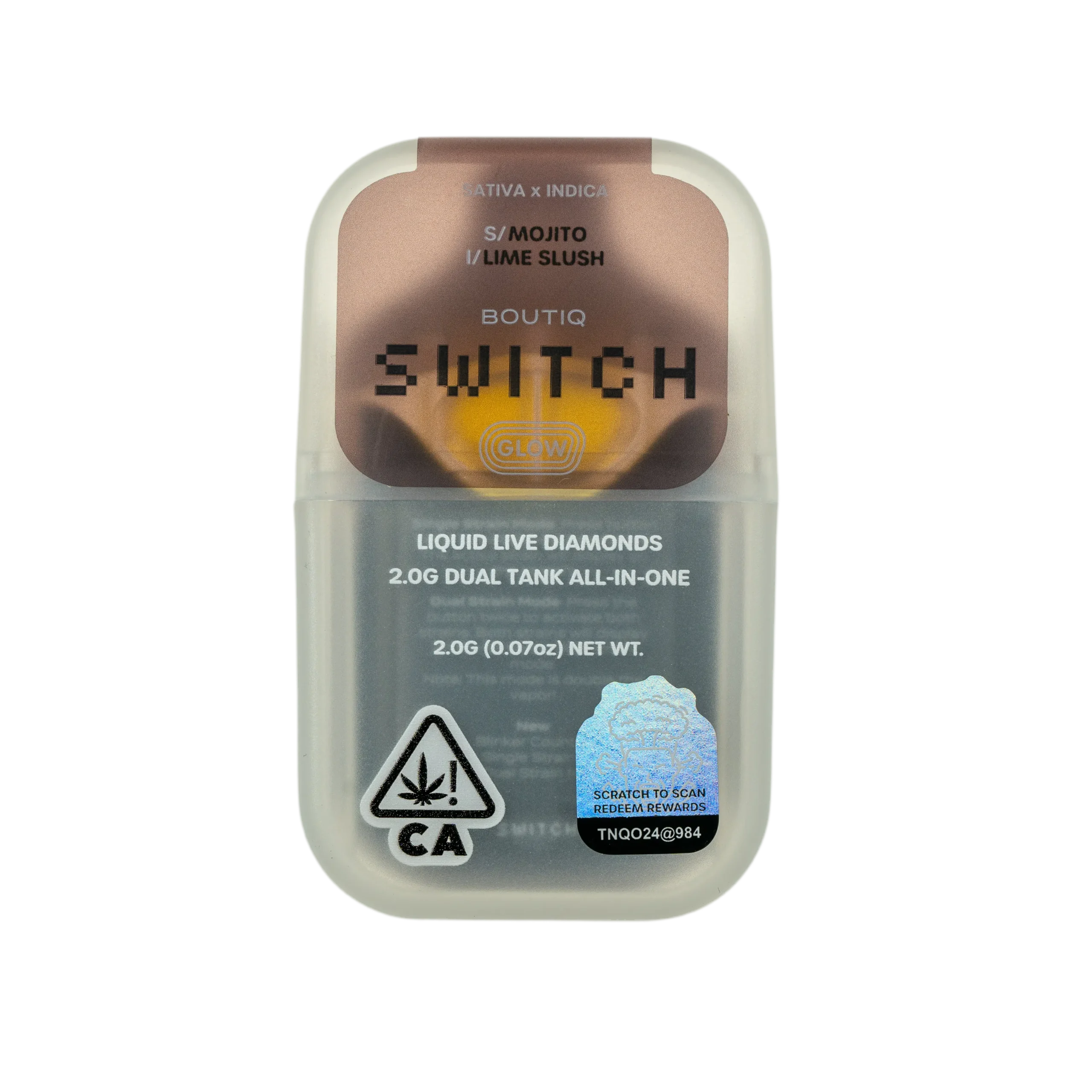 Boutique Switch Glow 2g Dual Tank Disposable | Mojito x Lime Slush | Liquid Live Diamonds | Glow-in-the-Dark Vape By Boutiq