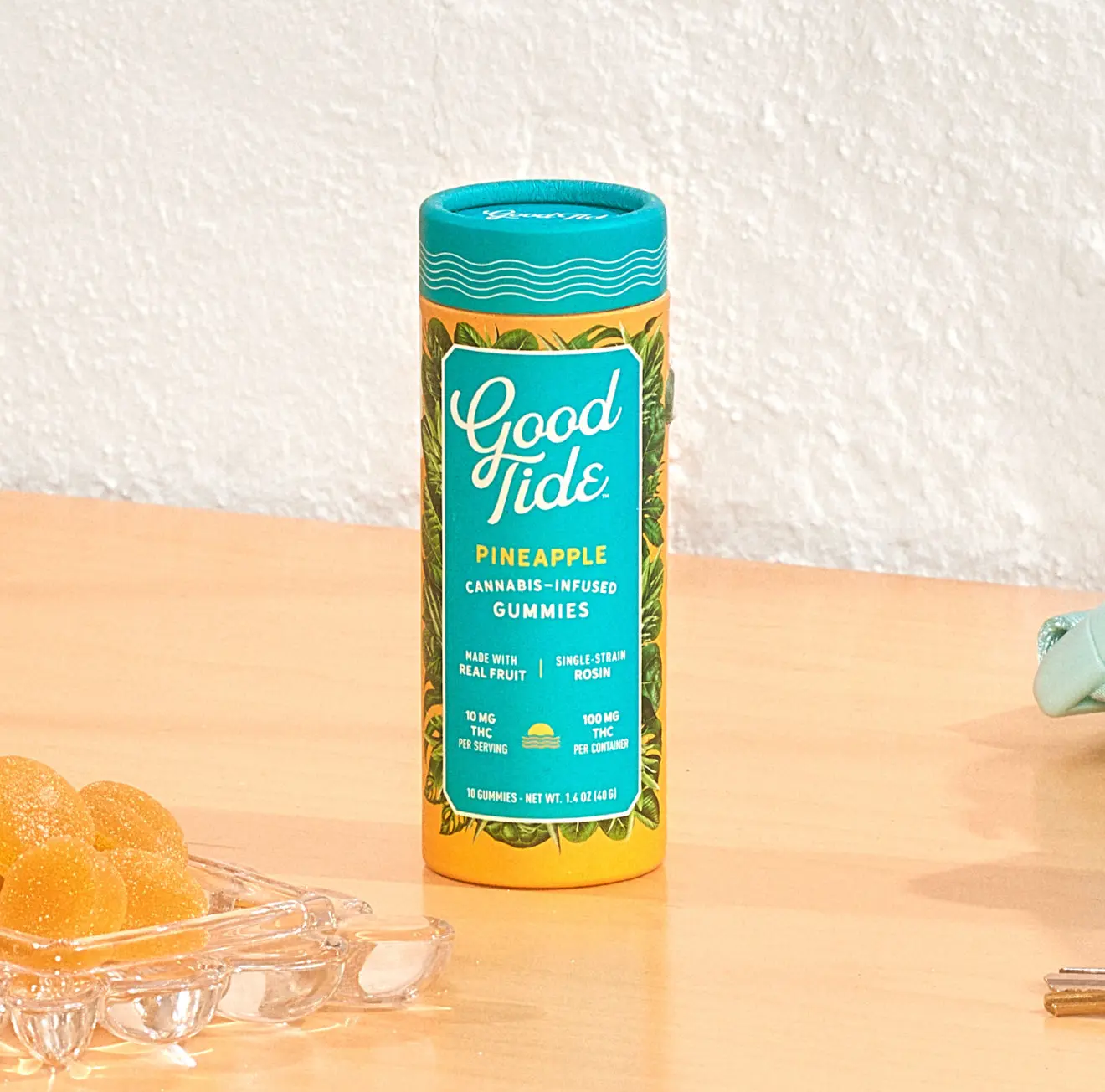 Good Tide Pineapple Gummies | 100mg THC | Solventless Hash Rosin | Real Fruit | Sativa | Uplifting Edibles By Good Tide